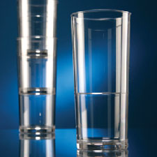 A 568ml (pint) polycarbonate clear plastic glass. Designed for easy stacking.